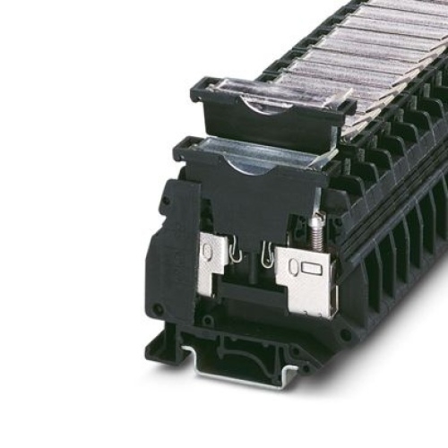 Phoenix Contact 0920083 A modular terminal block with a fuse is available, characterized by a nominal voltage of 500 V and a nominal current of 10 A. The connection method is screw-based and features a rated cross-sectional area of 1.5 mm2, allowing for larger cross-sections up to 16 mm2. It can be mounted using options NS 35/7,5, NS 35/15, or NS 32, with the unit itself featuring a black coloration.