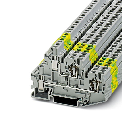 STTBU 4-PE Phoenix Contact 3033171 Double-level spring-cage Terminal Block - STTBU 4-PE Spring Cage Connection 2 Level 6.2 mm with 4 Connections. Grounded, Not Fused Green-Yellow. , max rating.