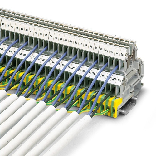 Phoenix Contact 0461034 Component Terminal Block - SLKK 5-LA 60 RD/U-O Screw Connection 2 Level 6.2 mm with 5 Connections. Grounded, Not Fused Gray. 500 Volt, 34 Amp max rating.