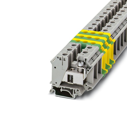 Phoenix Contact 3074088 The terminal block is available in various configurations, including a screw connection and different rated cross sections ranging from 0.75 to 35 mm². The block can be mounted using two types of mounting systems, namely the NS 35/7.5 and NS 35/15. Its color is a standard gray tone.