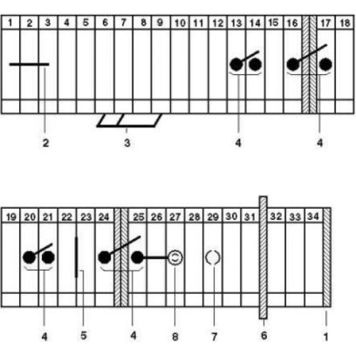The asymmetrical arrangement of the terminal blocks on the DIN rail enables the neutral busbar to be routed past the terminal blocks