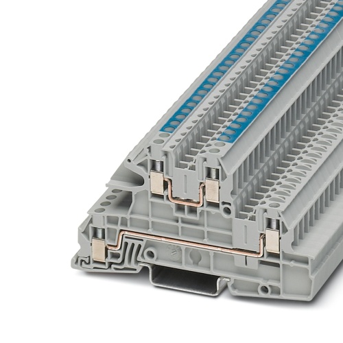 UTI 2,5-L/L Phoenix Contact 3076031 Installation Terminal Block - UTI 2,5-L/L Screw Connection 3 Level 5.2 mm with 4 Connections. Not Grounded, Not Fused Gray. 400 Volt, 24 Amp max rating.