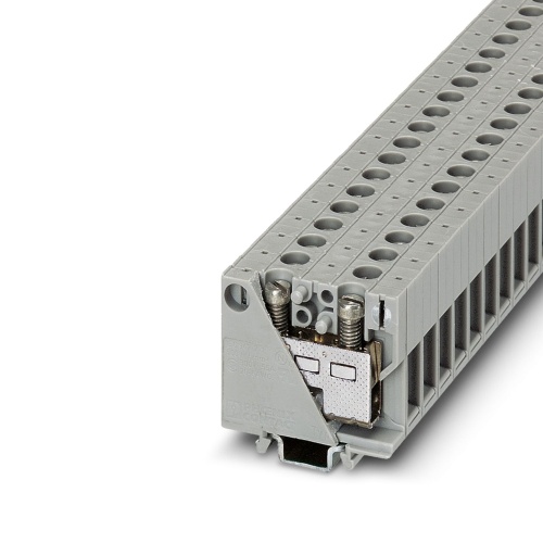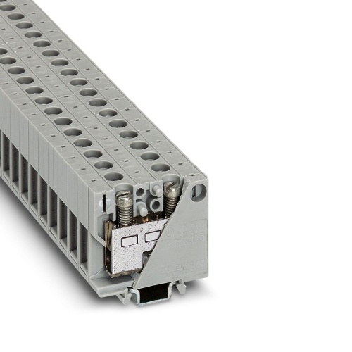 MBK 10 Phoenix Contact 1402018 Mini Feed Through Terminal Block - MBK 10 Screw Connection 1 Level 7.5 mm with 2 Connections. Not Grounded, Not Fused Gray. 500 Volt, 61 Amp max rating.