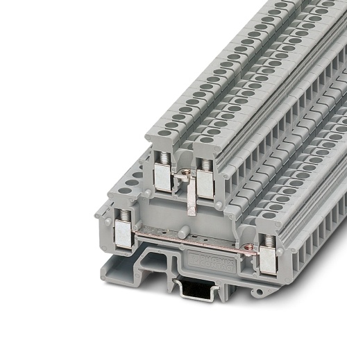 MBKKB 2,5-BE Phoenix Contact 1414103 Mini Feed Through Terminal Block - MBKKB 2,5-BE Screw Connection 2 Level 5.2 mm with 4 Connections. Not Grounded, Not Fused Gray. 500 Volt, 24 Amp max rating.