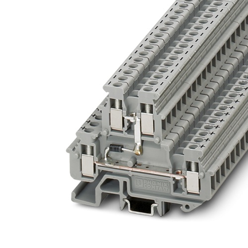MBKKB 2,5-DIO/U-O Phoenix Contact 2800570 Mini Feed Through Terminal Block - MBKKB 2,5-DIO/U-O Screw Connection 2 Level 5.2 mm with 4 Connections. Not Grounded, Not Fused Gray. 500 Volt, 24 Amp max rating.