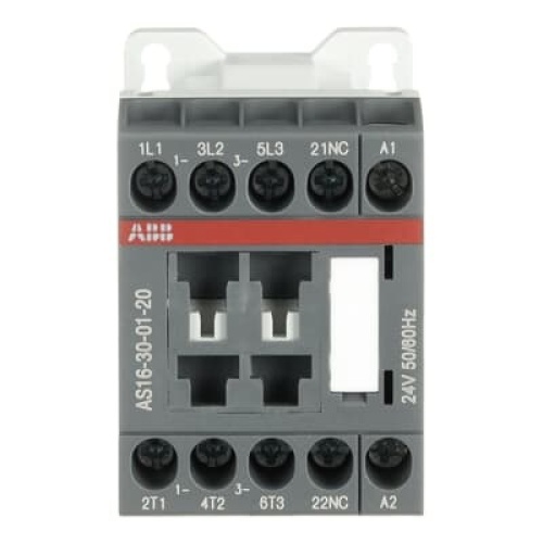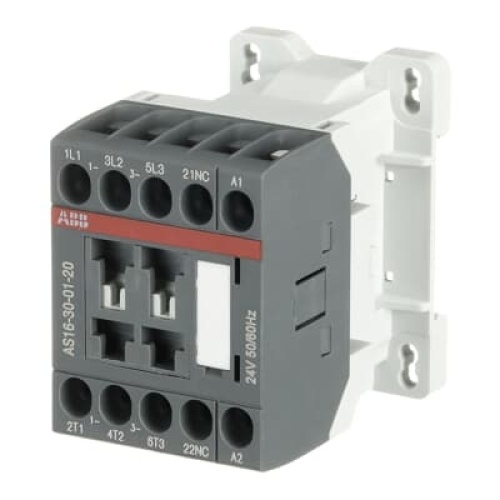 ABB AS16-30-01-20 - AC Contactor - 24 VAC - 50/60 Hz - 15.7 Amp - 3 NO - Three Pole - 0.75-2 HP @ 220-240 VAC 1 Phase, 3-10 HP @ 208-600 VAC 3 Phase - Screw Terminals