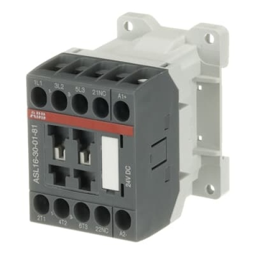 ABB ASL16-30-01-81 - DC Contactor - 24 VDC - 50/60 Hz - 15.7 Amp - 3 NO - Three Pole - 0.75-2 HP @ 220-240 VAC 1 Phase, 3-10 HP @ 208-600 VAC 3 Phase - Screw Terminals