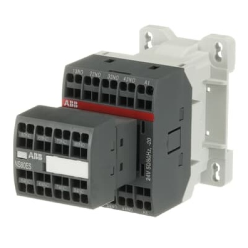 ABB NS80ES-20 - NS... contactor relays are used for switching auxiliary circuits and control circuits. The NS..S contactor relays are the spring terminal version of the NS... range. - Poles: 8-pole contactor relays - Control circuit: AC operated with laminated magnet circuit - Accessories: a wide range of accessories is available.