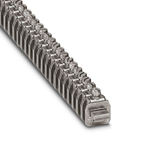 Phoenix Contact 0404017 The connection terminal block features a screw connection and has a rated cross-sectional area of 4mm², with actual cross-sections ranging from 0.5mm² to 6mm², typically mounted on a neutral busbar and distinguished by its silver color.