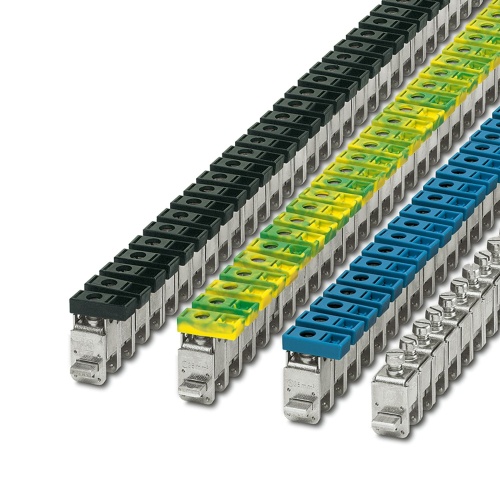 Phoenix Contact 0424039 The connection terminal block has a nominal voltage of 300V and can handle a maximum current of 125A, featuring a screw connection method and available in various rated cross-sections ranging from 2.5mm2 to 35mm2; it is typically mounted on a neutral busbar with a black color.
