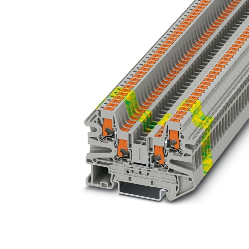 PTV 2,5-QUATTRO Phoenix Contact 1078999 Feed Through Terminal Block - PTV 2,5-QUATTRO Push-In Connection 1 Level 5.2 mm with 2 Connections. Not Grounded, Not Fused Gray. 800 V, 28 A max rating.