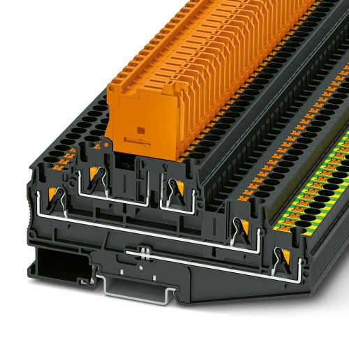 PT 4-PE/L/HEDI Phoenix Contact 3002606 Lever-type disconnect Terminal Block - PT 4-PE/L/HEDI Push-In Connection 1 Level 6.2 mm with 5 Connections. Not Grounded, Not Fused Black. 500 V, 20 A max rating.