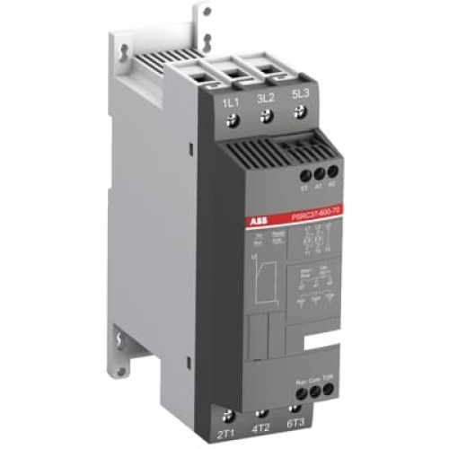 ABB PSRC37-600-70 - The PSRC soft starter is specially optimized for scroll compressors, offering a solution that minimizes stress on motors and reduces maintenance costs. Scroll compressors typically have specific requirements due to their load characteristics, and the PSRC addresses these needs effectively. It reduces starting current, ensuring a short starting time for lubrication, and maintains the recommended minimum starting voltage for secure operation. The built-in bypass and easy setup make installation convenient, and it can be connected to a manual motor starter for comprehensive motor protection against overload and short-circuit situations. With a temperature range of -25 to +60 degrees and fixed, tamper-proof settings, the PSRC is a reliable choice for scroll compressor applications, enhancing motor reliability, installation efficiency, and application productivity.