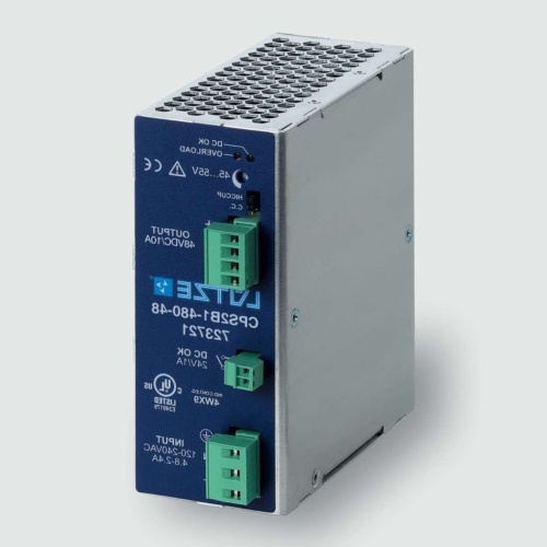 Lutze 723721 CPS2B1-480-48 - The premium Compact series stands out for its remarkable features, making it an ideal choice for various applications. Its exceptionally compact design ensures space efficiency while maintaining a high efficiency rate of over 94%, resulting in minimal power loss and low heat dissipation. With a wide input voltage range and output options ranging from 2.5 amps to 100 amps, this series offers flexibility and reliability. Moreover, its ability to handle overload situations, reaching up to 150% above the nominal rating for 5 seconds, showcases its robust performance. Equipped with short circuit protection and featuring parallel and redundant capabilities, this series ensures enhanced safety and operational stability. The availability of screw and pluggable screw terminals, along with compliance to RoHs standards and UL 508 Listing, further emphasizes its quality, making it a top choice in the market. - 2.2" x 5.5" x 5.5" (HxWxD)