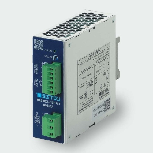 Lutze 723500 CPSB1-120-24E - Compact Series - 120 Watt - Input: 85 - 264 VAC, 110 - 345 VDC - Output: 24 VDC - One Phase - 5 Amp - 47 Hz-63 Hz - Aluminum - IP20 - Screw Connections - DIN Rail Mount