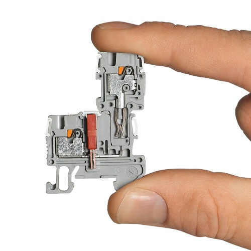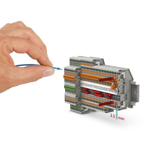 MPT 1,5/S Phoenix Contact 3248100 Mini Feed Through Terminal Block - MPT 1,5/S Push-In Connection 1 Level 3.5 mm with 2 Connections. Not Grounded, Not Fused Gray. 500 V, 17.5 A max rating.