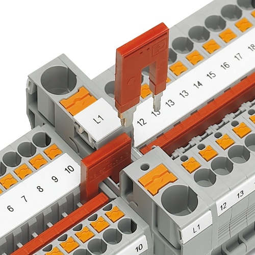 The Push-in connection terminal blocks are characterized by the system features of the CLIPLINE complete system and by easy and tool-free wiring of conductors with ferrules or solid conductors