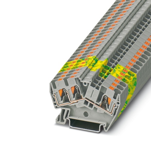 PTS 4-TWIN Phoenix Contact 3213604 Feed Through Terminal Block - PTS 4-TWIN Push-In Connection 1 Level 6.2 mm with 3 Connections. Not Grounded, Not Fused Gray. 800 V, 38 A max rating.