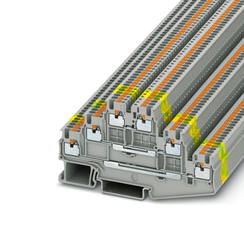 PT 1,5/S-3L Phoenix Contact 3213713 Multi-level Terminal Block - PT 1,5/S-3L Push-In Connection 1 Level 3.5 mm with 6 Connections. Not Grounded, Not Fused Gray. 400 V, 15 A max rating.