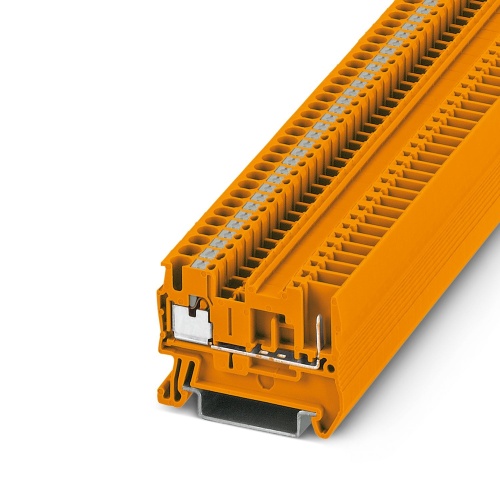 PT 2,5/1P OG Phoenix Contact 3210047 Feed Through Terminal Block - PT 2,5/1P OG Push-In Connection 1 Level 3.5 mm with 2 Connections. Not Grounded, Not Fused Orange. 500 V, 24 A max rating.