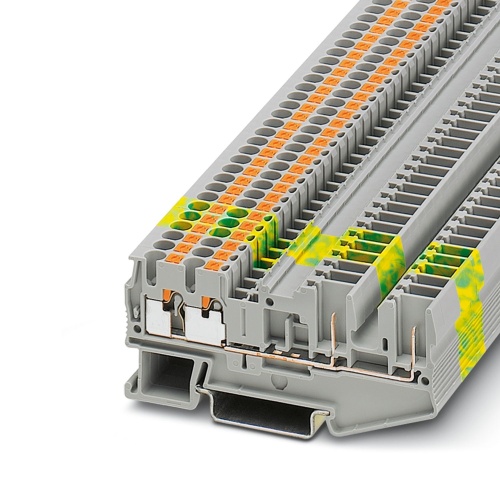PT 2,5-QUATTRO/2P Phoenix Contact 3209662 Feed Through Terminal Block - PT 2,5-QUATTRO/2P Push-In Connection 1 Level 3.5 mm with 4 Connections. Not Grounded, Not Fused Gray. 500 V, 24 A max rating.