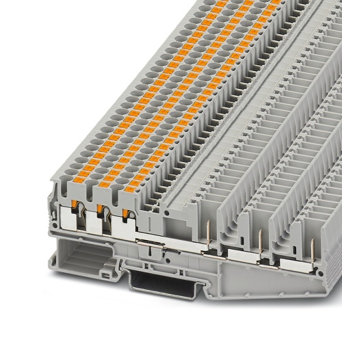 PT 2,5-HEXA/3P Phoenix Contact 3040044 Feed Through Terminal Block - PT 2,5-HEXA/3P Push-In Connection 1 Level 3.5 mm with 6 Connections. Not Grounded, Not Fused Gray. 500 V, 24 A max rating.
