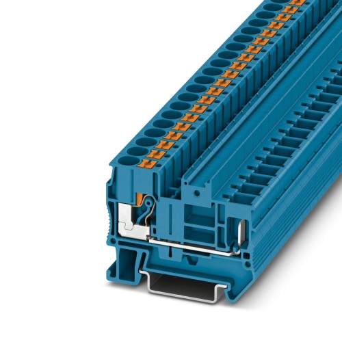 PT 6/1P BU Phoenix Contact 3061761 Feed Through Terminal Block - PT 6/1P BU Push-In Connection 1 Level 3.5 mm with 2 Connections. Not Grounded, Not Fused Blue. 1000 V, 41 A max rating.