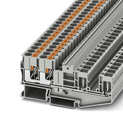 PT 6-QUATTRO/2P Phoenix Contact 3061826 Feed Through Terminal Block - PT 6-QUATTRO/2P Push-In Connection 1 Level 3.5 mm with 4 Connections. Not Grounded, Not Fused Gray. 1000 V, 41 A max rating.