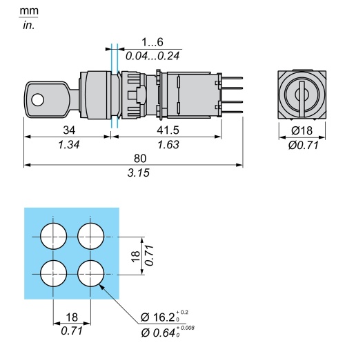 Schneider Electric XB6AGH5B Harmony Key Selector Switch is designed to be simple, flexible and durable. This device is Round with a size of 16 mm. 1 NO + 1 NC IP 65 Key switch with 3 positions 70° and Stay put functionality.