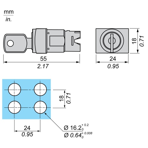 Schneider Electric ZB6DGC Harmony Plastic Key Selector Switch Head Rectangular 16 mm IP 65