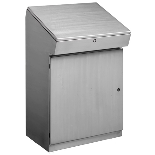 nVent Hoffman CFC483623SS Enclosure Stainless Steel 48 x 36 x 23 inch (HxWxD) Type 4X 304 Stainless Steel Console hinged with Tool-to-open 3-point latch on front access door. Door is removable and reversible with 170-degree full-access opening. Quarter-turn stainless steel latches hold top cover securely closed. (DOES NOT INCLUDE BACK PANEL)