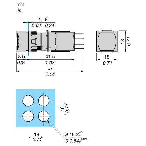 Schneider Electric XB6CA25B Harmony 16 mm Square Black Plastic Non-Illuminated Push Button Modular Complete Assembly with a Flush profile is made for small areas and is designed to be simple and flexible. Has 1 NO + 1 NC contacts with Spring return functionality. This product is IP 65 and UL 508 rated.