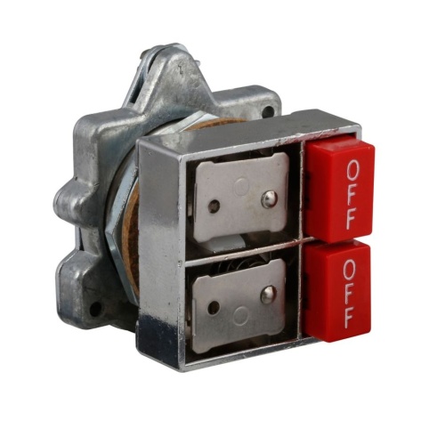 Pushbutton operators will accommodate up to four single depth stackable contact blocks behind each operating button, up to eight circuits maximum.
