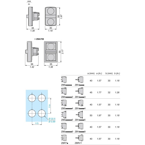 Schneider Electric ZB4BA73133 Harmony 22 mm Rectangular Green and Red Chromium plated metal Multiple Push Buttons that is with a Projecting and Flush profile. This product is a Modular Heads and and is IP 69 rated and UL 508 certified.