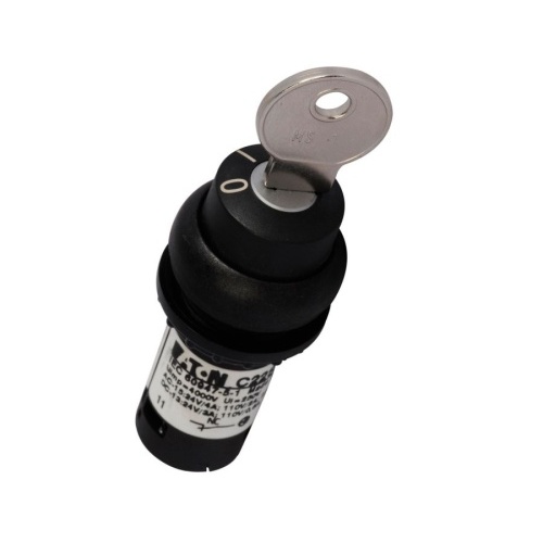 Eaton M22S-WRS-A1 - M22 Modular Two Position Key-Operated Selector Switch, 22.5 mm, Key Operated, Maintained, Key removable left, Non-illuminated, Bezel: Black, Button: Black, MS1, IP66, NEMA 4X, 13, Two-Position, 100,000 Operations