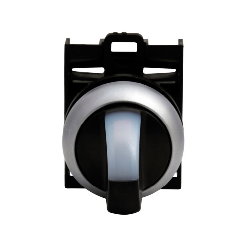 Eaton M22-WRLK-B - M22 modular pushbutton, M22 Modular Selector Switch Operator, 22.5 mm, Knob, Maintained, Illuminated, Bezel: Silver, Button: Blue, IP66, NEMA 4X, 13, Two-position, Light 100,000 hours, Button 100,000 Operations