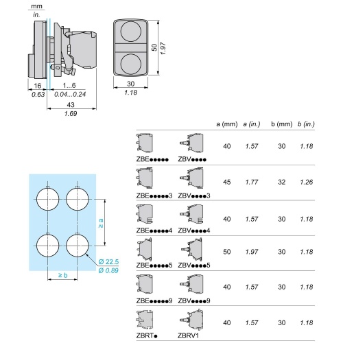 Schneider Electric XB4BW73731G5 Harmony 22 mm Rectangular Green and Red Chromium plated metal Illuminated Multiple Push Buttons Modular Complete Assembly with a Projecting and Flush profile is made of high quality material and is designed to be simple and flexible. Has 1 NO + 1 NC contacts with Spring return functionality. This product is IP 69 and UL 508 rated and is Marked Green ''I'' - red ''O''.