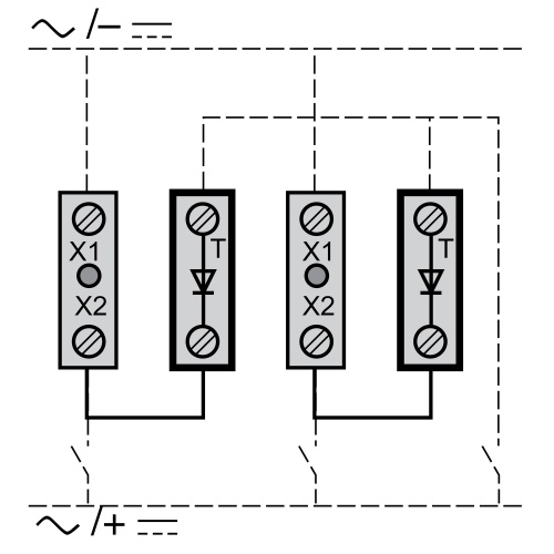 Various types of connection: screw clamp, connector, Faston connector or spring terminal