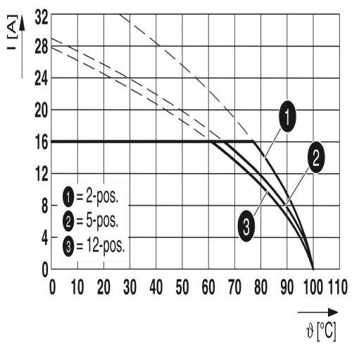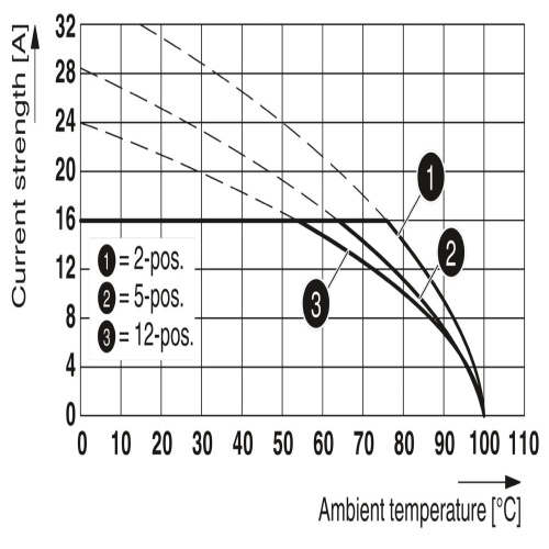 Phoenix Contact 1924318 The PCB header has a nominal cross-sectional area of 2.5mm² and is green in color, with a rated current of 16A, as indicated on the derating curve. It can handle a maximum voltage of 320V, features a Sn contact surface, uses pin connections with three potentials, one row, three positions, and three connections. The pitch between pins is 5.08mm, suitable for wave soldering with linear pinning, and requires three solder pins per potential.
