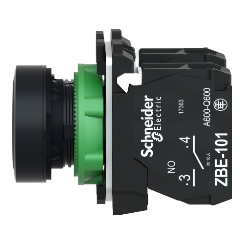Schneider Electric XB5AA25 Harmony 22 mm Round Black Plastic, Dark gray plastic Non-Illuminated Push Button Modular Complete Assembly with a Flush profile is made of high quality material and is designed to be simple and flexible with Screw Clamp Terminals. Has 1 NO + 1 NC contacts with Spring return functionality. This product is IP 69 and UL 508 rated and is Unmarked.