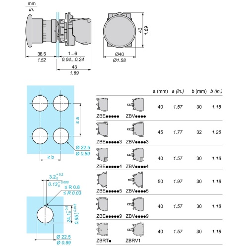 Schneider Electric XB5AC21 Harmony 22 mm Round Black Plastic, Dark gray plastic Mushroom Button Non-Illuminated Mushroom 1 NO Modular Complete Assembly