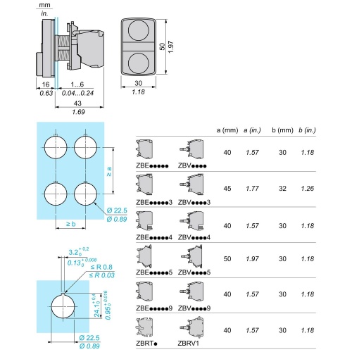 Schneider Electric XB5AW73731B5 Harmony 22 mm Rectangular Green and Red Plastic Illuminated Multiple Push Buttons Modular Complete Assembly with a Flush profile is made of high quality material and is designed to be simple and flexible with Screw Clamp Terminals. Has 1 NO + 1 NC contacts with Spring return functionality. uses 20-24 V AC/DC and is IP 69 and UL 508 rated and is Marked Green ''I'' - red ''O''.