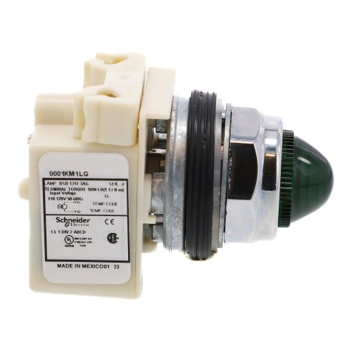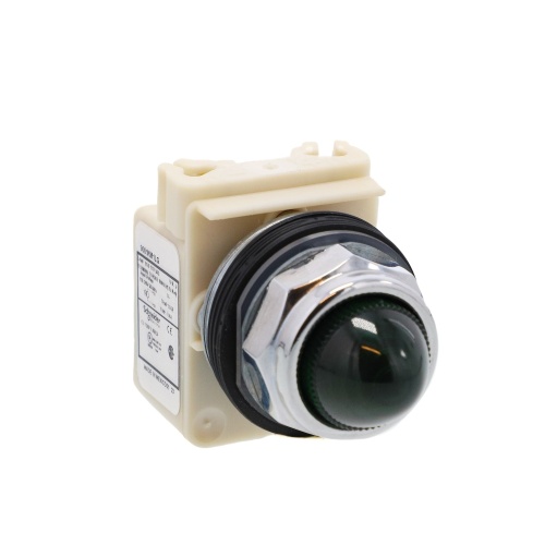 Schneider Electric 9001KP1LGG9 Harmony 30 mm Round Green Chromium plated metal Pilot Light Illuminated Modular Complete Assembly