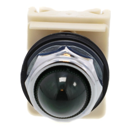 Schneider Electric 9001KP1LGG9 Harmony 30 mm Round Green Chromium plated metal Pilot Light that is Illuminated . This product is a Modular Complete Assembly and has Screw Clamp Terminals and is IP 66 rated and UL 508 certified.