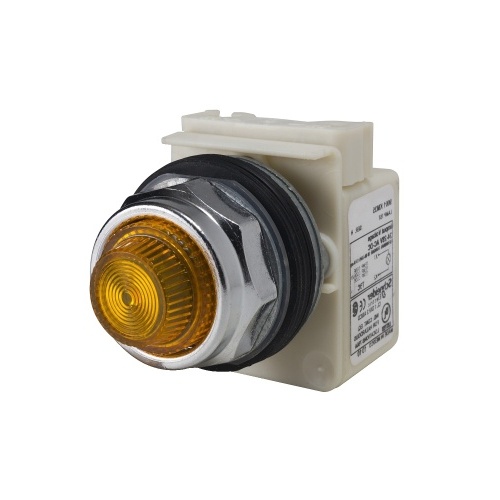 Schneider Electric 9001KP35A31 Harmony 30 mm Amber Chromium plated metal Pilot Light Illuminated 24-28 V AC/DC Modular Complete Assembly