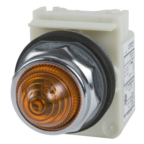 Schneider Electric 9001KP35LYA9 Harmony 30 mm Round Amber Chromium plated metal Pilot Light Illuminated 24-28 V AC/DC Modular Complete Assembly