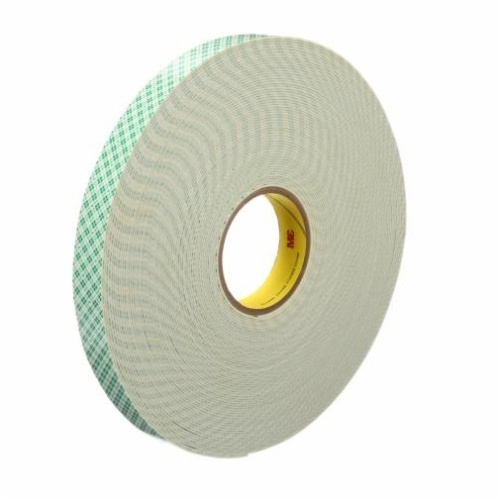 3M 7100091133 - Off-white, 0.0625 in. (1.6 mm) open-cell, flexible urethane foam carrier. High shear adhesive with high temperature resistance. Durable foam is ideal for interior mounting applications. Application: Interior Mirror & Fixture Attachment - Cat. No. 4026