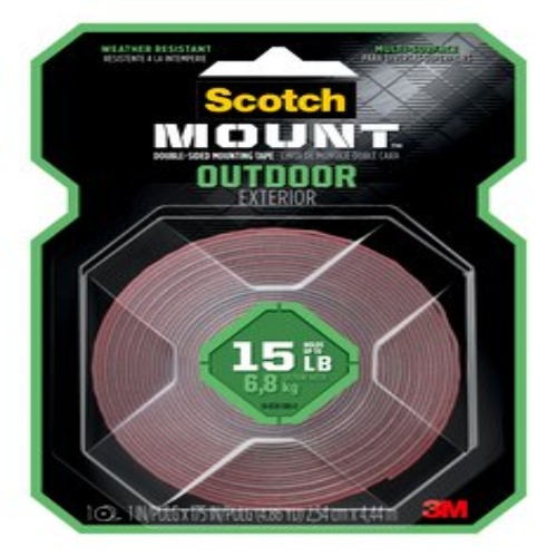 3M 7100220256 - Scotch-Mount Outdoor Double-Sided Mounting Tape features 3M Industrial Strength Adhesive. Holding up to 15 lbs, this weather resistant tape can be used outdoor and is ideal on metal, vinyl siding and painted and finished wood. - Cat. No. 411H-MED