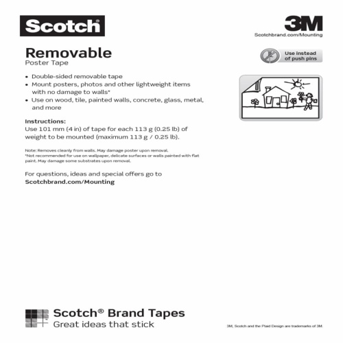 3M 7100237871 - Scotch Removable Poster Tape is your go to solution for mounting posters in the home, dorm, classroom and office. - Cat. No. 109S