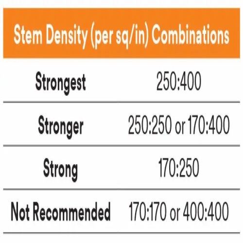 Mates with Type 170, Type 250 or Type 400 stem densities to provide different strength combinations
